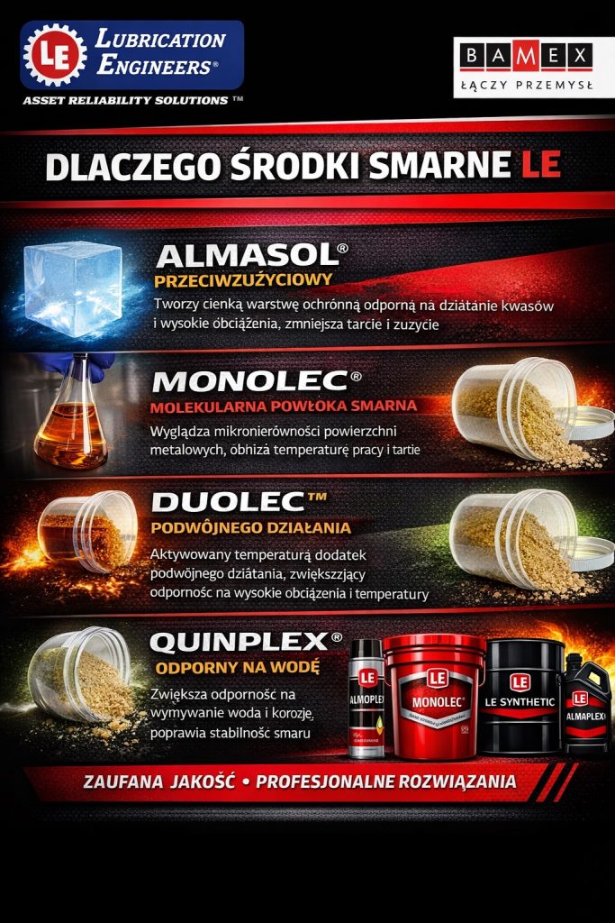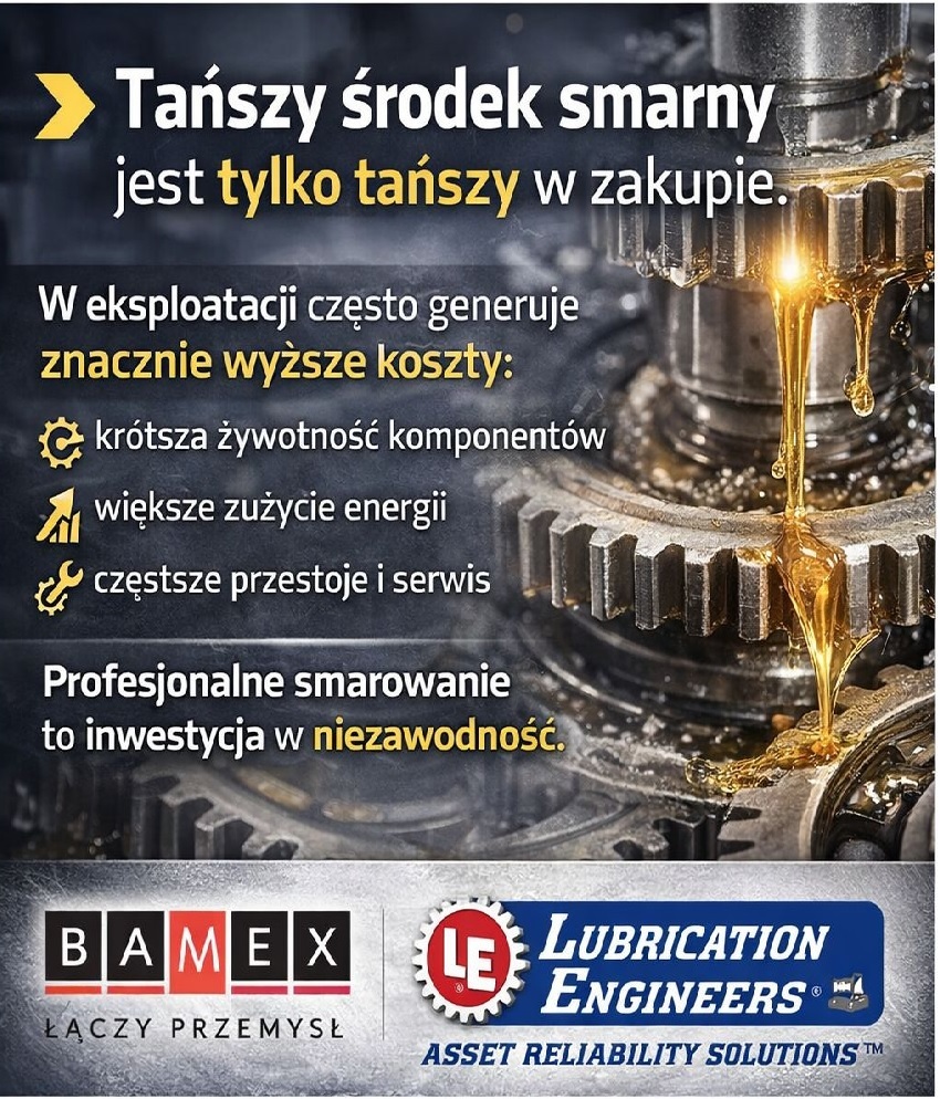 Już teraz skontaktuj się z nami: biuro@bamex.com.pl, lub telefonicznie, a doradca Bamex Sp. z o. o. dobierze dla Ciebie idealne rozwiązanie w dziedzinie środków smarnych Lubrication Engineers.
