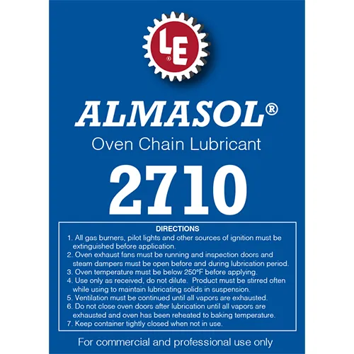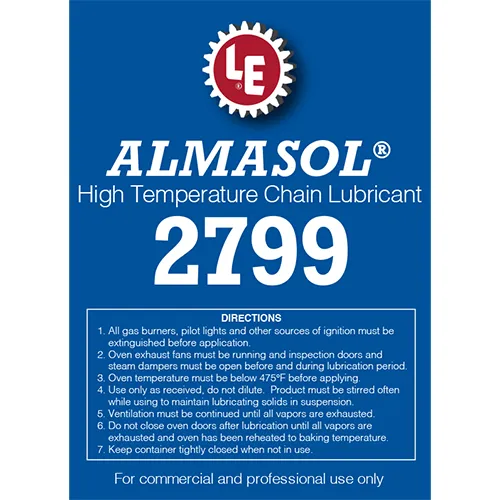 Wysokiej jakości smar do łańcuchów wysokotemperaturowych zawiera ALMASOL® i inne submikronowe stałe środki smarne rozproszone w specjalnym syntetycznym nośniku wysokotemperaturowym. Nadaje się do stosowania na rozgrzane łańcuchy bez przerywania produkcji. Stosowany zgodnie z zaleceniami, środek wnika we wszystkie ruchome części, pozostawiając warstwę ochronną stałych środków smarnych, które ulatniają się bez śladu w wysokich temperaturach. Nie tworzy gumy ani nie zwęgla się, zapewniając maksymalną migrację do sworzni łańcucha.